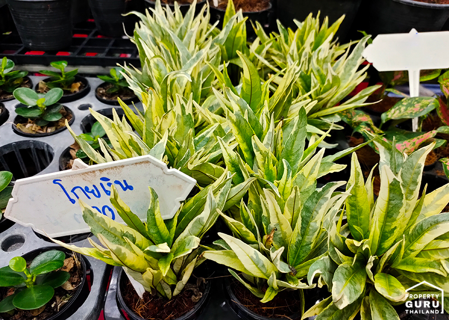 ต้นโกยเงิน หรือขาไก่ด่าง ไม้มงคลโบราณเชื่อว่ามีไว้เรียกทรัพย์ นิยมปลูกเป็นแถวตามแนวรั้ว เพราะกิ่งก้านไม่แผ่กว้าง เป็นไม้พุ่ม ชอบแสงแดดรำไรหรือแดดเช้า