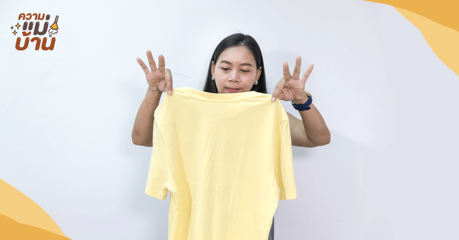 2. จับเสื้อฝั่งด้านหน้าหันเข้าหาที่ตัวเรานะคะ