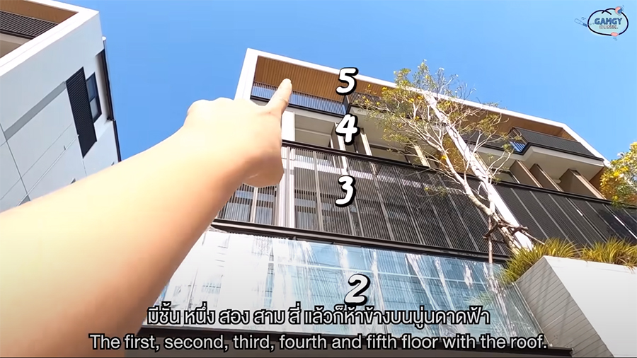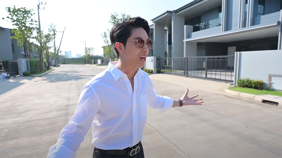 โครงการนี้มีชื่อว่า Bangkok Boulevard หลังนี้เน้นปาร์ตี้ที่โถงชั้น 1 เพราะคุณบอยมั่นใจว่าเพื่อนต้องมา 100% ส่วนชั้น 2 ตรงกลางที่โครงการทำไว้เป็นโซนครอบครัวก็จะยุบรวมมาทำ Master bedroom ให้หมดเพื่อตอบโจทย์การใช้งานของตัวเอง ในคลิปนั้นได้ออกแบบภายในไว้หมดแล้ว ทำให้เรานึกภาพตามไม่ยากเลย และที่ขาดไม่ได้เลยก็คือห้องสตรีมที่มองทะเลออกไปเห็นโซนหน้าบ้าน