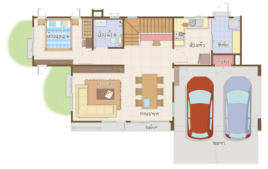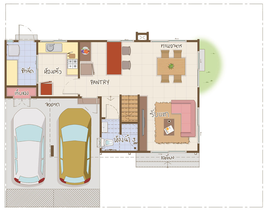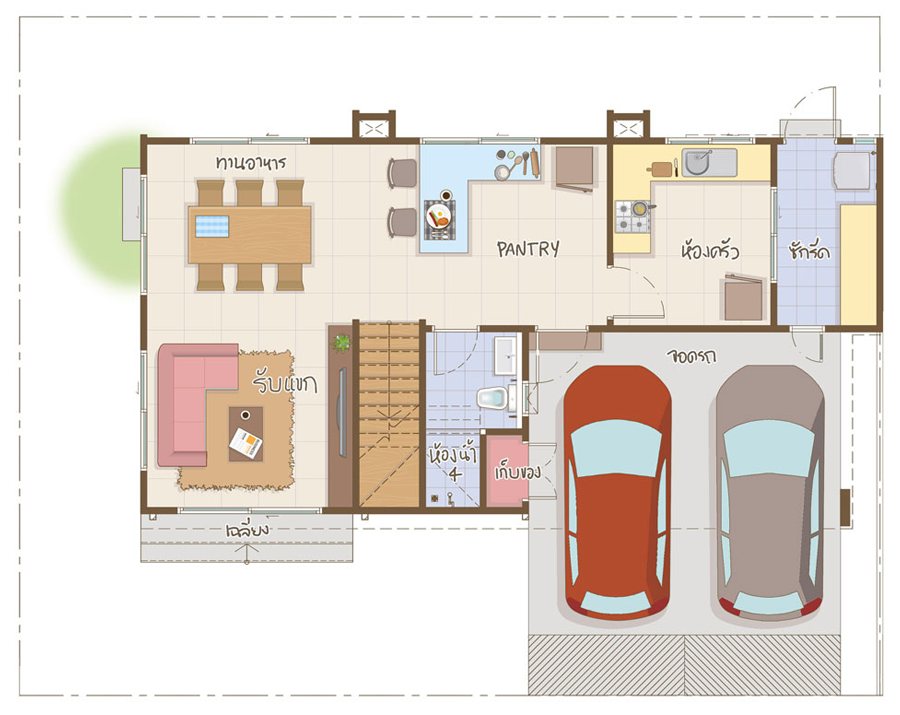 แปลนบ้านชั้น 1 ทำออกมาได้ดูน่ารักดีค่ะ