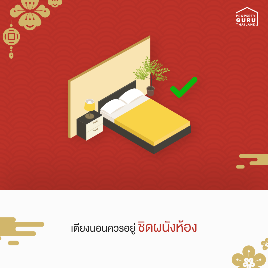 การวางเตียงชิดผนังอย่างมั่นคง ไม่วางแบบลอยๆ เชื่อว่าจะทำให้มีความมั่นคง ชีวิตไม่ตกต่ำ เหมือนมีผู้ปกป้องคุ้มครองไม่ให้เกิดสิ่งที่ไม่ดีกับตัวเราได้ด้วย