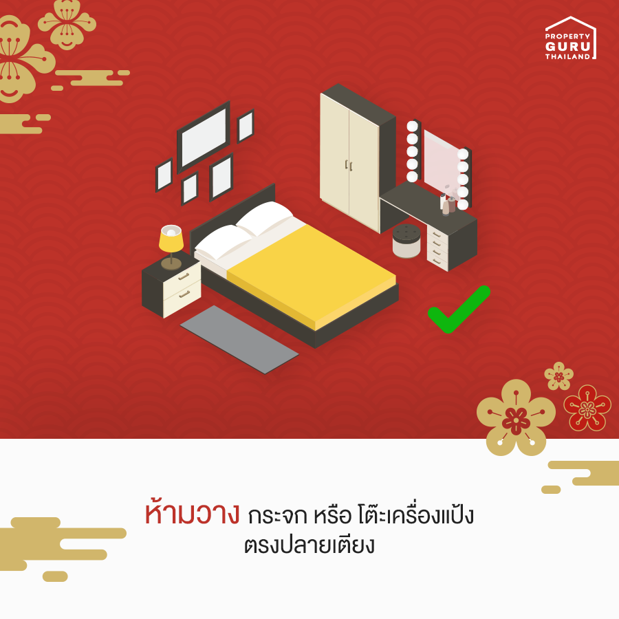5. ห้ามวางกระจกหรือโต๊ะเครื่องแป้งไว้ปลายเตียง