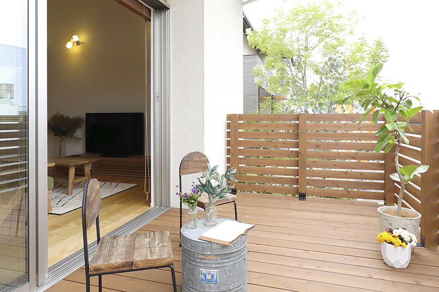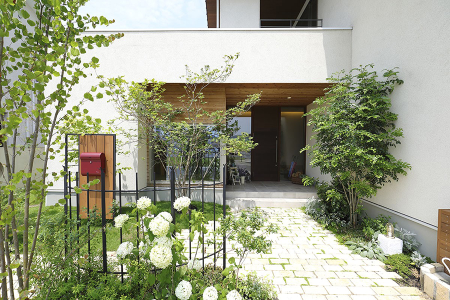 บริเวณหน้าบ้านจะเป็นว่ามีการจัดสวนแบบญี่ปุ่นเล็กๆ เอาไว้ เพื่อบังแดดและเพิ่มความเป็นส่วนตัวให้กับคนในบ้าน