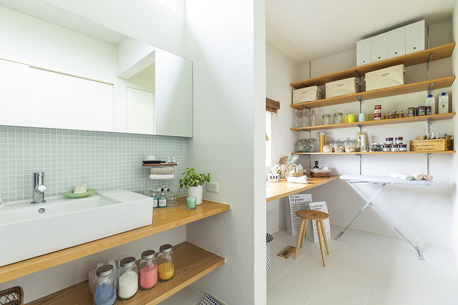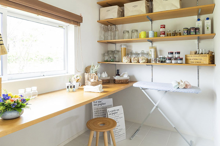 ห้องซักรีดที่รวมเอาเป็นห้องอเนกประสงค์จะมานั่งทำงานก็ได้เพราะแสงเข้าถึง