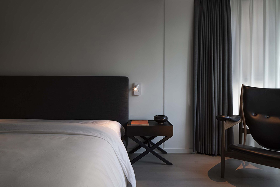 ห้องนอนเลือกใช้สีคุมโคนเพื่อให้เกิดความสบายตา และใช้เฟอร์นิเจอร์ไม้ให้มีความอบอุ่น