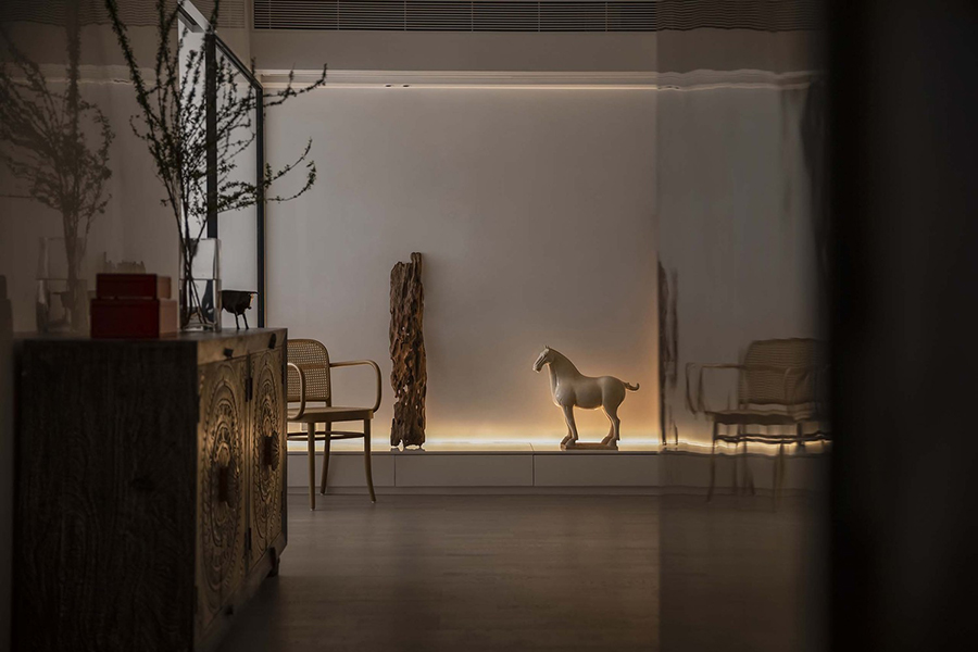 มินิมอลไม่ได้หมายความว่าโล่งอย่างเดียว มินิมอลหมายถึงการลดสี ลดรูปแบบให้ง่ายๆ น้อยๆ ดังนั้นถ้าอาม่าเรายังเชื่อเรื่องสัตว์มงคล เราก็เลือกรูปแบบที่เข้ากับบ้าน อย่างเช่นม้าตัวนี้ที่มีความหมายถึงขุนนาง ชนชั้นสูง เจ้าคนนายคน การตั้งรูปปั้นม้าไว้ในบ้านมีความเชื่อว่าจะทำให้การงานประสบความสำเร็จรวดเร็ว เหมือนดั่งม้าที่วิ่งได้เร็วและมั่นคง