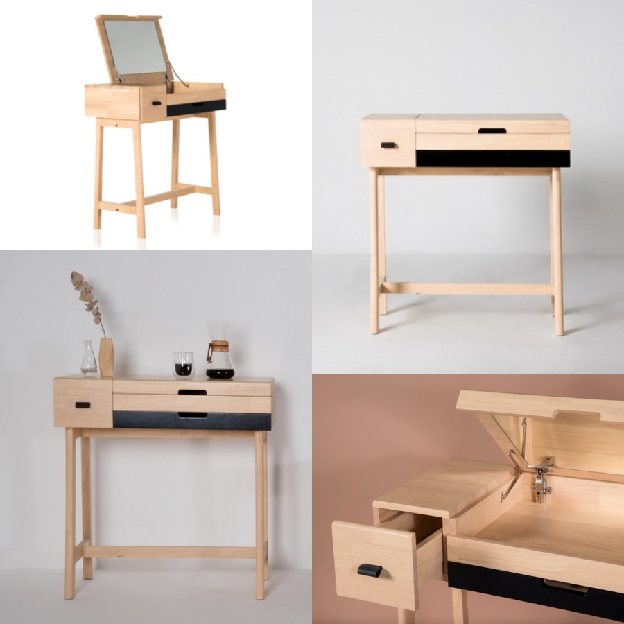 โต๊ะเครื่องแป้งไม้ยางพาราแท้ 100% ดีไซน์เก๋ นอกจากจะเป็นโต๊ะเครื่องแป้งแล้ว ยังสามารถใช้เป็นโต๊ะทำงานได้อีกด้วย Multifunction เหมาะกับคนยุคใหม่ อีกทั้งยังประหยัดเนื้อที่เหมาะกับผู้ที่อาศัยอยู่ในคอนโดอีกด้วยค่ะ เป็นสินค้าจากทางร้าน eggwhitedesign มีขายทั้งในหน้าเว็บของร้าน และ nocnoc สนนราคาอยู่ที่ 13,500 บาท แต่ถ้าซื้อใน nocnoc ตอนนี้กำลังลดราคาเหลือ 11,475 บาท ถึงวันที่ 14 กุมภาพันธ์นี้พอดีเลย