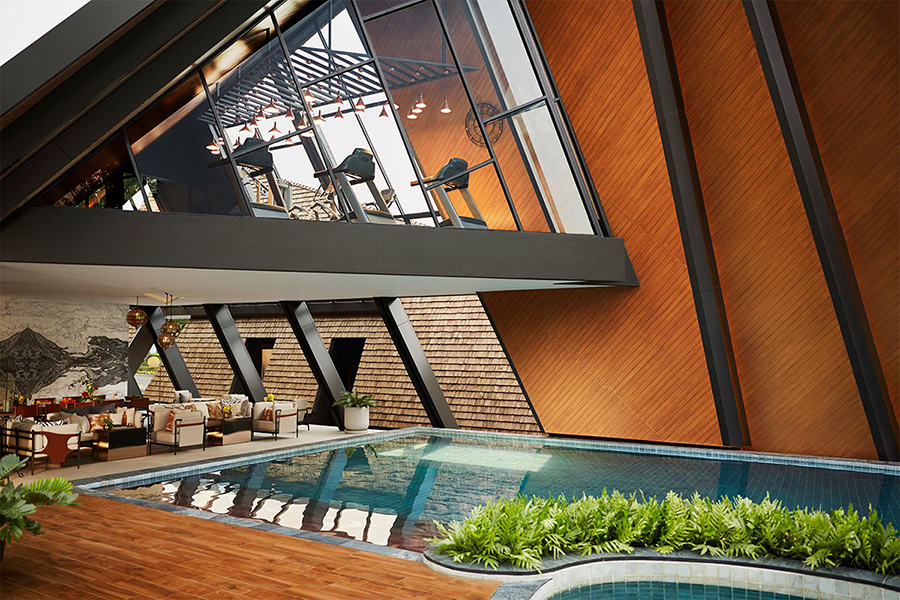 บุราสิริ พัฒนาการ (Burasiri Pattanakarn) ส่วนกลางสไตล์รีสอร์ตผสมผสานกับแนวแคมป์ปิ้งที่กำลังเป็นที่นิยม สถาปัตยกรรมจึงออกมาเป็นอาคารสามเหลี่ยมขนาดใหญ่ โดยพื้นที่ใช้สอยจะมีทั้ง indoor และ semi-outdoor โดยล็อบบี้และสระว่ายน้ำอยู่ที่ชั้น 1 ส่วนฟิตเนสอยู่บนชั้น 2 ดูกี่ทีก็เหมือนกับด้านหน้าทางเข้าล็อบบี้โรงแรมไม่ผิดเพี้ยน