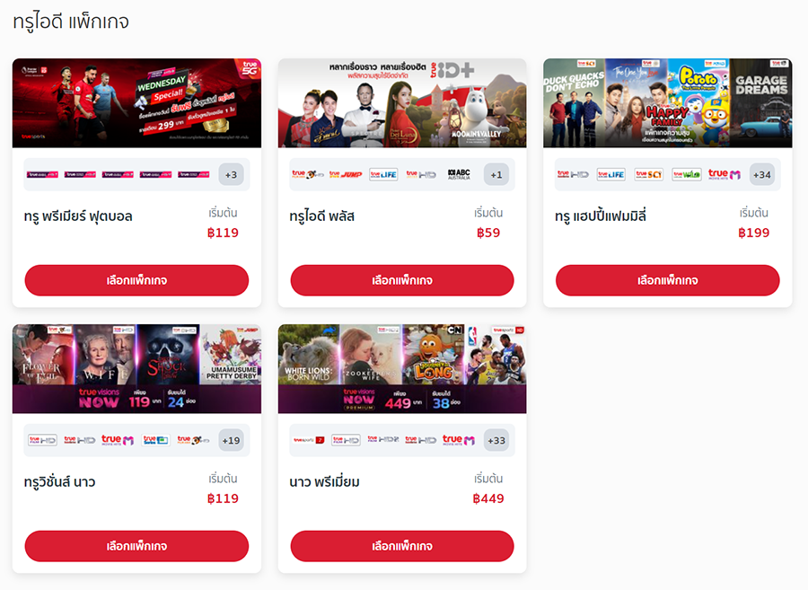 | ราคาแพ็กเกจทีวีเริ่มต้น (ไม่รวมแพ็กเกจอินเทอร์เน็ตไฟเบอร์) | 119 ฟรี*