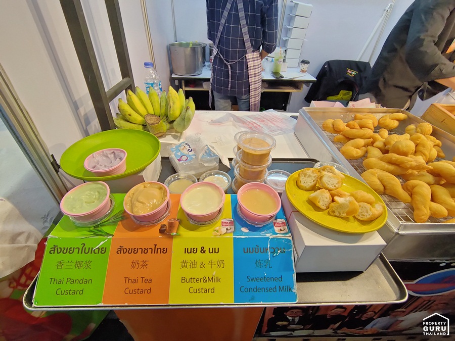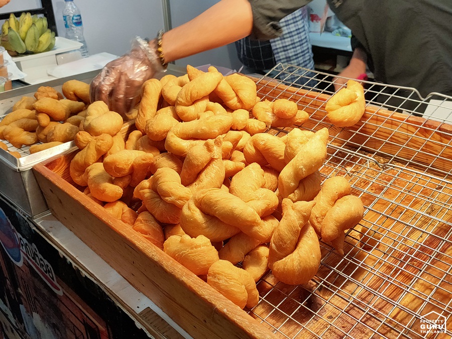 ปาท่องโก๋และซาลาเปาตัวใหญ่ทอดจนเหลือง รสชาติกรอบนอกนุ่มใน