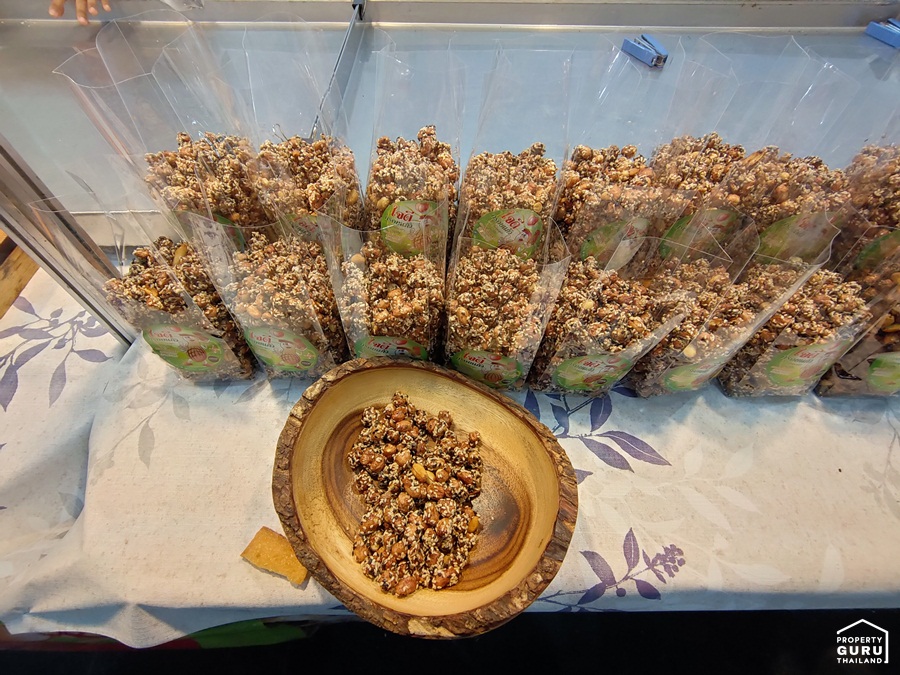 ใครอยากกินถั่วหรือเม็ดมะม่วงอร่อยๆ ก็ต้องไม่พลาดร้านนี้ ทั้งอร่อยและมีประโยชน์เพราะถั่วมีคุณค่าทางโภชนาการสูง มีให้เลือกทั้งถั่วคลุกงา ถั่วคลุกขี้ม่อน และเม็ดมะม่วงหิมพานต์ ราคาเริ่มต้นไม่ถึงร้อย