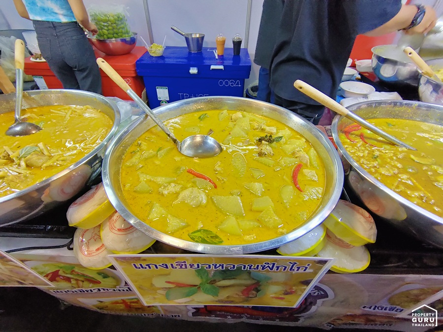 มีเเกงเขียวหวานให้เลือก 3-4 อย่าง อาทิ แกงเขียวหวานไก่หน่อไม้ แกงเขียวหวานไก่ฟัก และแกงเขียวหวานเนื้อ แกงเขียวหวานลูกชิ้นปลากราย เลือกใช้ลูกชิ้นปลากรายแท้ ทานคู่กับไข่ยางมะตูม บอกเลยว่าฟิน