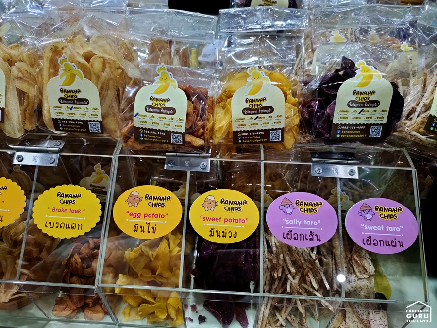 สำหรับกล้วยทอดมีทั้งหมด 8 รสชาติไม่ว่าจะเป็น รสบาบีคิว หวาน เค็ม ต้มยำ วาซาบิ ชีส สาหร่าย และเบรคแตก นอกจากนี้ยังมีมันไข่ มันม่วง และเผือกเส้นให้ทานด้วย รสชาติหวานๆ เค็มๆ กลมกล่อมกำลังดี