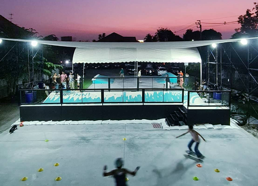 - Wave Bank ขนาด 12 x 4.8 m และ Wave Ramp ขนาด 3.6 m ที่ Flat ground เวลา 22:00-24:00 น.สูงสุด 25 ท่านต่อคืน ราคาท่านละ 100 บาท