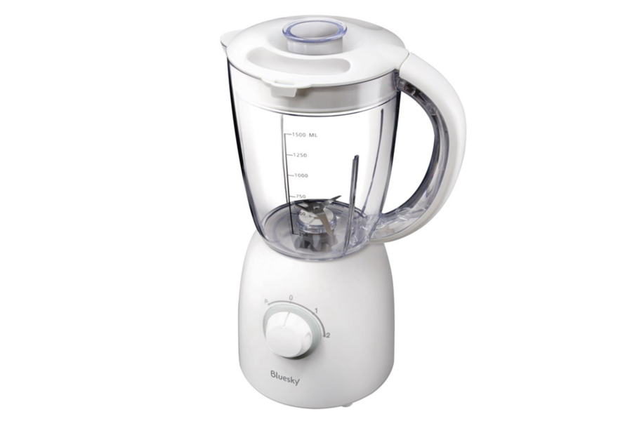เครื่องปั่นตั้งโต๊ะจาก Bluesky โปร่งใส สีขาว ขนาด 1.5 ลิตร ใบมีดทำจากแสตนเลส สตีล ทนทาน ไม่เป็นสนิม สามารถถอดออกมาทำความสะอาดได้ เครื่องปั่นมอเตอร์กำลังสูง 500W สามารถทำได้หลากหลายเมนูตั้งแต่สมูทตี้ตอนเช้าไปจนถึงซอส เครื่องดื่มแบบปั่น ด้วยใบมีดสแตนเลสที่มีความแข็งแรง จึงบดสับน้ำแข็งได้ละเอียด