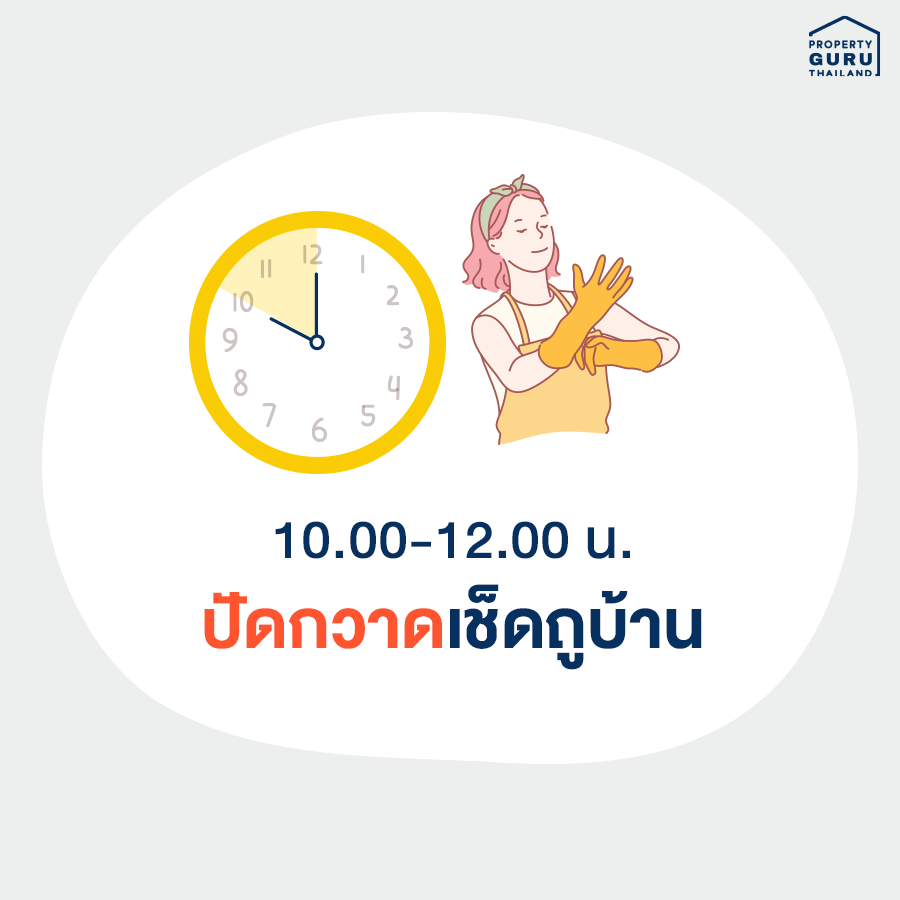10.00-12.00 น. ปัดกวาดเช็ดถูบ้าน