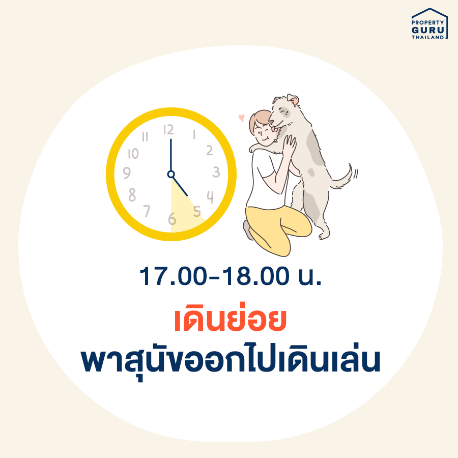 17.00-18.00 น. เดินย่อย พาสุนัขออกไปเดินเล่น