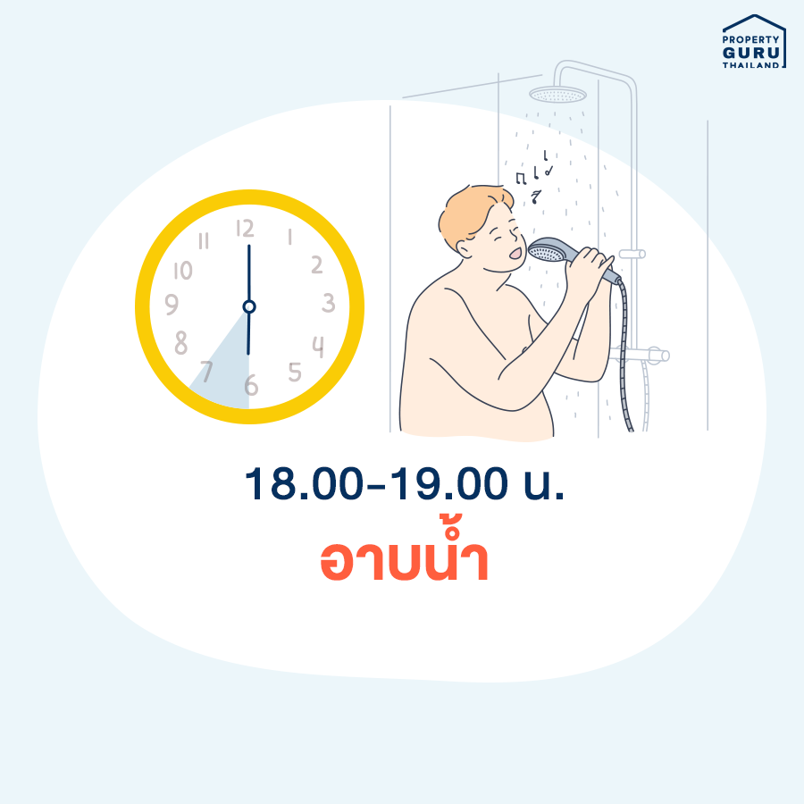 ช่วงเวลาที่อาบน้ำเป็นช่วงเวลาที่เราได้ผ่อนคลาย หลายๆ คนมักจะแช่น้ำด้วยน้ำมันหอมระเหย อาบน้ำอุ่นๆ จะช่วยคลายความเมื่อยล้าจากทั้งวันได้ ตอนนี้ก็ให้ลองทบทวนดูว่าวันนี้ทำอะไรไปบ้าง และพรุ่งนี้จะทำอะไรดี บางทีความคิดดีๆ ก็จะมาช่วงเวลาที่เราอาบน้ำนี่แหละค่ะ