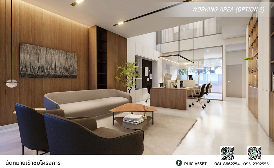 หากต้องการทำเป็นสำนักงาน ก็สามารถปรับพื้นที่ห้องนั่งเล่นเป็นโฮมออฟฟิศได้เช่นกัน