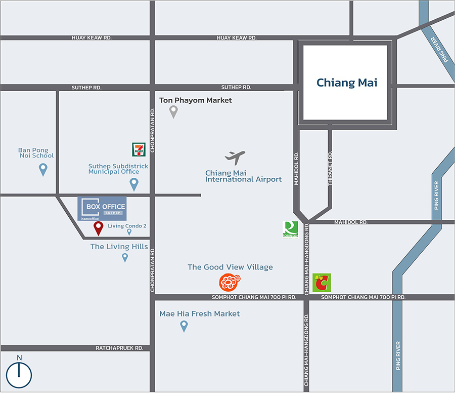 โครงการตั้งอยู่ตำบลหางดง เชียงใหม่ ทำเลทอง แหล่งธุรกิจแห่งใหม่ที่เหมาะแก่การลงทุน ได้ทั้งความสะดวกสบายในการเดินทาง และความเป็นธรรมชาติ ห่างจากสนามบินนานาชาติเชียงใหม่ เพียง 15 นาที ใกล้แหล่งชุมชม ศูนย์การค้า โรงเรียน โรงพยาบาล ครบครันกับสิ่งอำนวยความสะดวก รวมไปถึงแหล่งท่องเที่ยวทางวัฒนธรรมและธรรมชาติที่สวยงาม