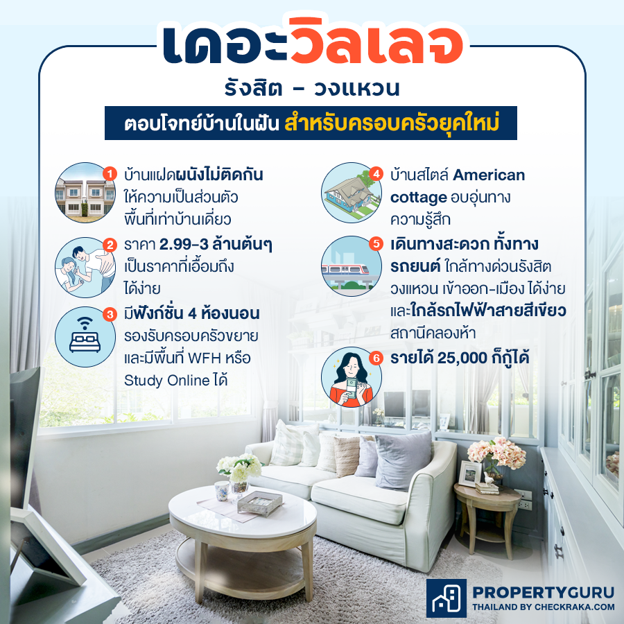 "รังสิต - วงแหวน" เป็นแหล่งชุมชนที่มีบ้านเรือนอยู่มากมาย ทั้งบ้านของชุมชนที่สร้างกันเอง หรือแม้แต่โครงการบ้านจัดสรรก็มีเยอะ สร้างมากันหลายสิบปีแล้วก็มีค่ะ หลายๆ คนที่อาศัยอยู่ที่นี่ อาจจะอยากมองหาบ้านใหม่ที่ยังคงอยู่ในทำเลเดิม เพราะฉะนั้น "โครงการเดอะวิลเลจ รังสิต - วงแหวน" จึงตอบโจทย์ชาวเจนใหม่ที่ยังอยากอยู่ละแวกเดิม แต่ได้บ้านใหม่เป็นของตัวเอง เพื่อการสร้างครอบครัวของตัวเองในอนาคตนั่นเองค่ะ