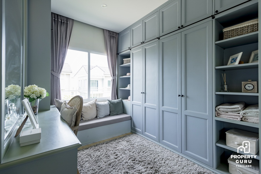 ซึ่งก็ยังเหลือพื้นที่ Walk-in Closet อีกเยอะ ทำได้ทั้งโต๊ะเครื่องแป้ง และมุมนั่งเล่นเล็กๆ