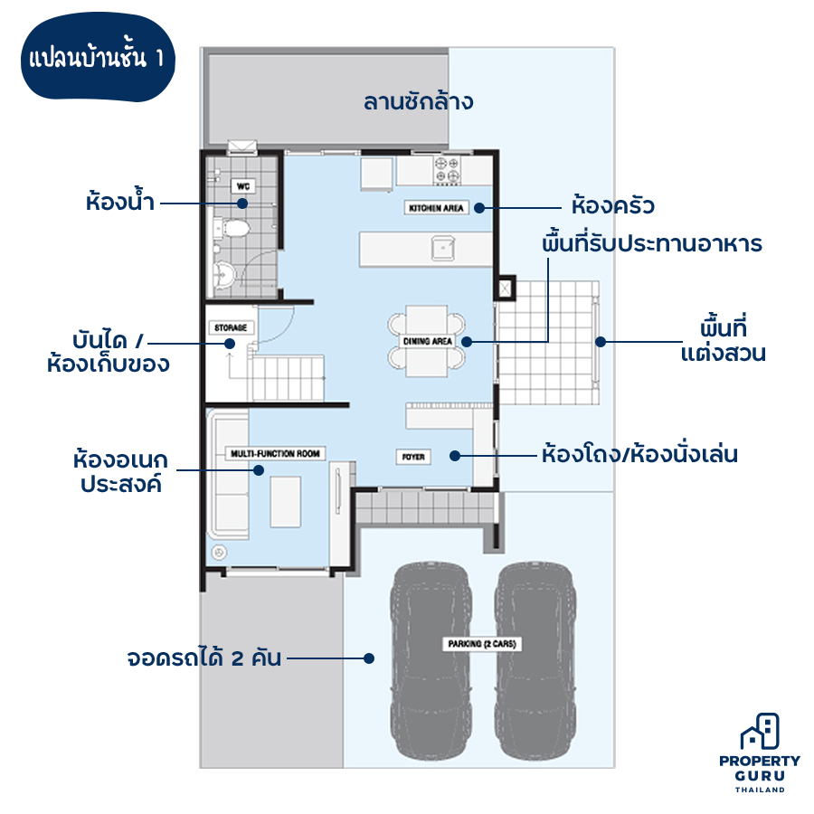 ด้านหน้าบ้านสามารถจอดรถได้ 2 คัน