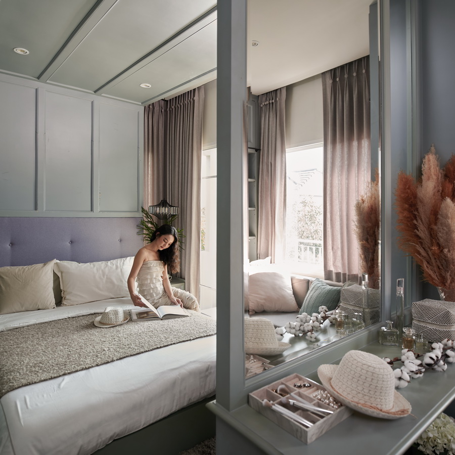 มาดูกันที่ Master Bedroom ยังคงคอนเซ็ปต์ความเป็นสไตล์ American Cottage โทนสีพาสเทลแบบอบอุ่นนุ่มลึก