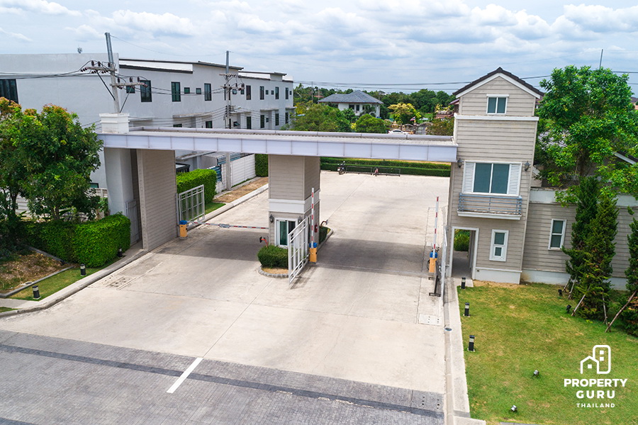ทางเข้าโครงการมีป้อมยาม ประตูกั้น และไม่กั้นกระดกเพิ่มความปลอดภัย