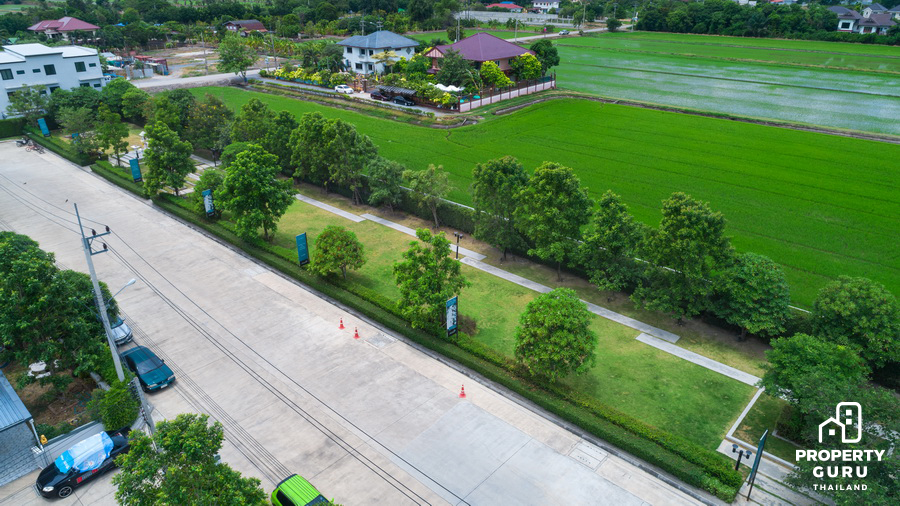 ลักษณะภาพรวมของโครงการนั้นจะเป็นแนวลึก ยาวเข้าไปด้านใน ถูกแบ่งออกเป็น 2 เฟส เฟสแรก คือโซนครึ่งแรกที่อยู่ใกล้กับทางเข้า ได้เปิดขายไปจนเกือบหมดแล้วเหลือหลังแปลงมุมไม่กี่หลังเท่านั้นค่ะ ส่วนเฟสสองที่กำลังเปิดขายอยู่ตอนนี้ จะอยู่อีกครึ่งหนึ่งด้านในลึกเข้าไป ทั้งสองเฟสมีสวนสาธารณะขนาดใหญ่ และมีพื้นที่สีเขียวรายล้อมเพิ่มความร่มรื่น