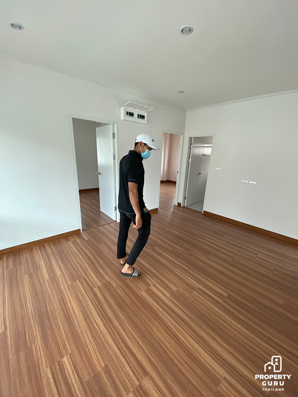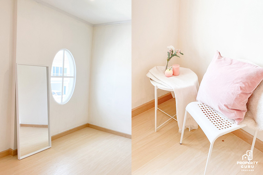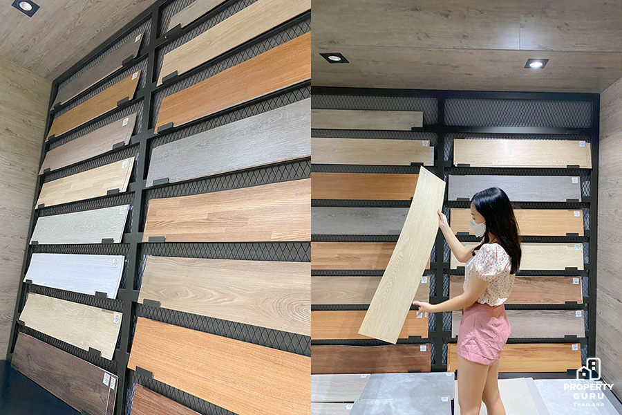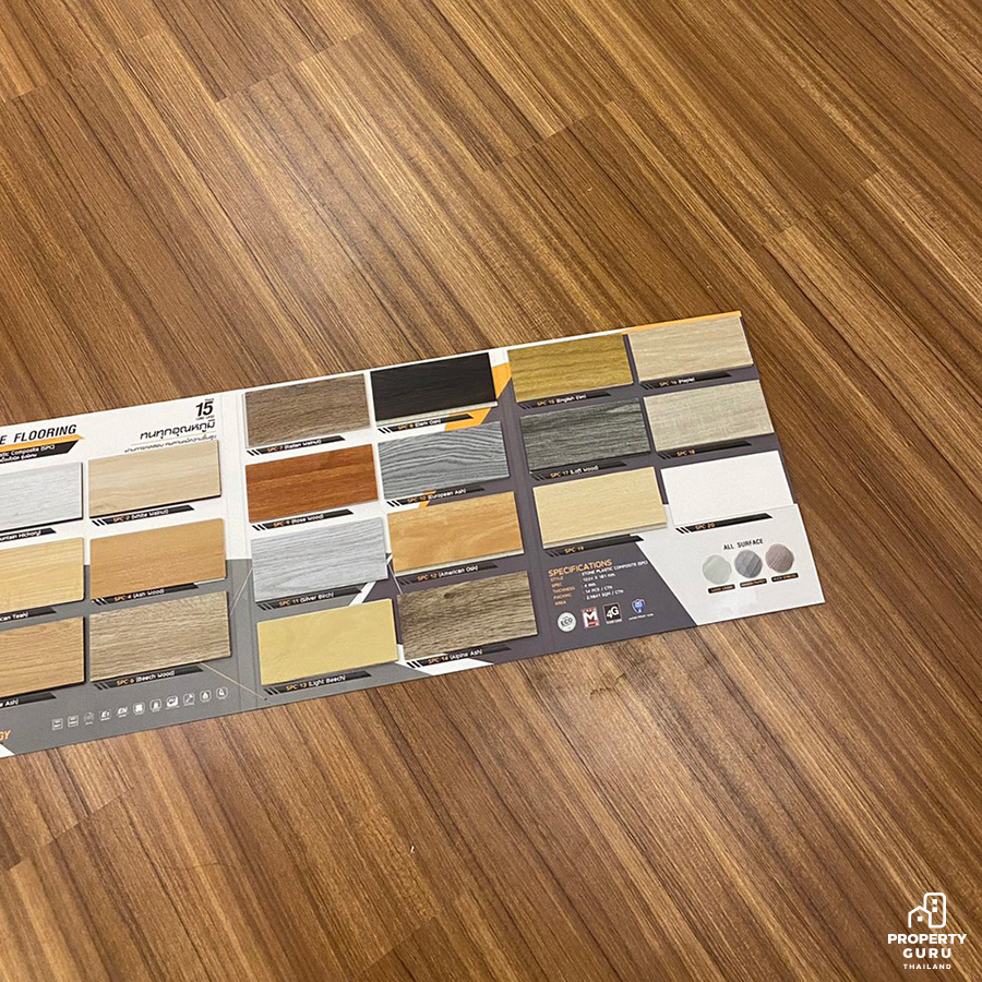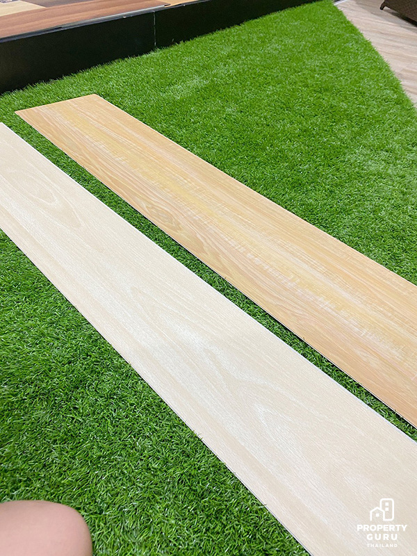 "พื้นเดิมตอนแรกเป็นลามิเนตสีเข้มครับ ซึ่งแรกสุดคือผมกับแฟนเราไม่ชอบสีเข้ม เพราะเราอยากให้บ้านสว่าง มี mood and tone แบบเกาหลีๆ เลยคิดว่าอยากจะเปลี่ยนเป็นสีอ่อน ประกอบกับพื้นลามิเนตบางจุดเริ่มมีการบวมน้ำและตอนนั้นก็ได้ห้าข้อมูลพื้นแบบต่างๆ รู้สึกว่าชอบกระเบื้องยาง เพราะว่ามันทนกว่า ส่วนตัวเลือกอื่นแทบไม่มีเลยครับ เพราะพอได้หาข้อมูลเกี่ยวกับกระเบ้ืองยางก็รู้สึกว่าตอบโจทย์เลย"