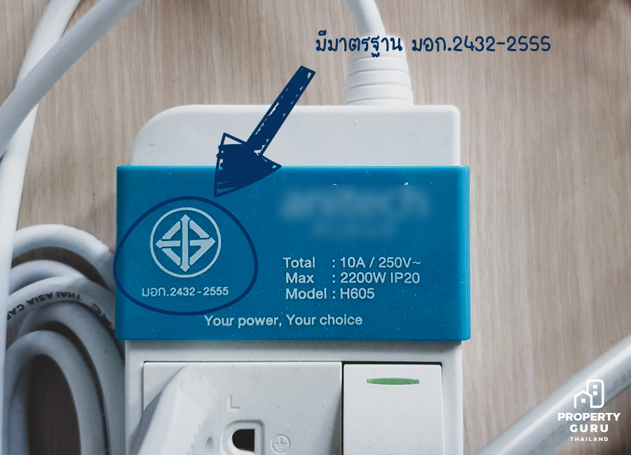 สิ่งแรกที่เราต้องคำนึงในการเลือกซื้อปลั๊กพ่วงก็คือมีมาตรฐาน มอก.2432-2555 นั่นเองค่ะ ซึ่งต้องระบุไว้ในตัวปลั๊กเลย (ไม่ใช่แค่ในสายไฟ) จึงจะเป็นมาตรฐานที่ครอบคลุมทั้งหมดของตัวปลั๊ก ทั้งสายไฟ ตัวเต้ารับ และเต้าเสียบของปลั๊กพ่วงทั้งหมด ถ้ามีมาตรฐานนี้ก็จะวางใจได้ในระดับหนึ่งว่าเราสามารถซื้อมาใช้งานในบ้านได้เลย อย่างไรก็ตาม ยังมีข้อพิจารณาอื่นๆ อีก ในข้อต่อๆ ไปค่ะ