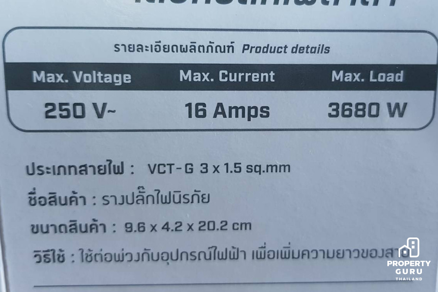 กำลังไฟที่ใช้จะถูกกำหนดไว้ในฉลากของสินค้า สำหรับ มอก.2432-2555 กำหนดให้ปลั๊กพ่วงรองรับแรงดันไฟฟ้าตั้งแต่ 50V - 440V (มาตรฐานอยู่ที่ 250V) และรองรับกระแสไฟฟ้าได้ไม่เกิน 16Amps ซึ่งโดยปกติ เต้ารับในบ้านโดยทั่วไป รองรับกระแสไฟฟ้าได้ไม่เกิน 16Amps อยู่แล้วค่ะ ส่วนจะนำเอาไปใช้กับอะไรในบ้านนั้นต้องดูที่กำลังไฟค่ะ ถ้าปลั๊กพ่วงอันไหนไม่ได้บอกกำลังไฟ (วัตต์) เราสามารถคิดได้คร่าวๆ จากการนำตัวเลข Volt x Amps = (วัตต์) ค่ะ สมมติว่าเราซื้อปลั๊กพ่วงมา ระบุไว้ว่าแรงดันไฟฟ้า 250V และกระแสไฟฟ้า 16A ก็จะได้ตัวเลขกำลังไฟฟ้าที่ประมาณ 4000 (250V x 16A = 4000W) แต่ไม่ควรใช้จนเต็ม 4000 อยู่ดีนะคะ ถ้ายี่ห้อไหนระบุกำลังไฟฟ้าไว้เลยก็จะดีมาก