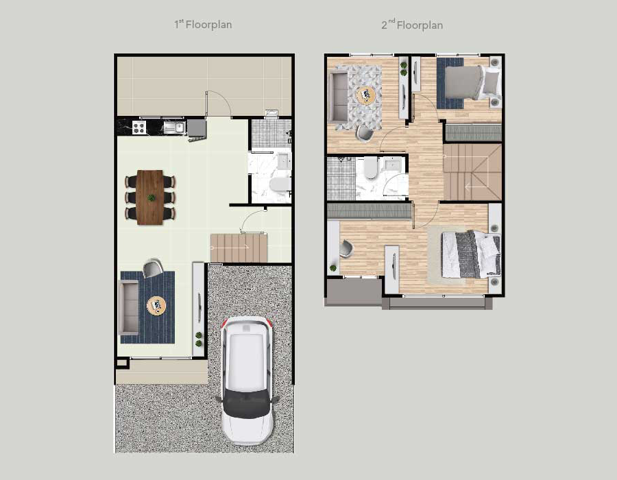 แบบบ้านของโครงการเป็นทาวน์โฮม 2 ชั้น พื้นที่ใช้สอย 118 ตร.ม. ประกอบไปด้วย 3 ห้องนอน 2 ห้องน้ำ 1 ที่จอดรถ ดีไซน์มาให้รองรับการออกแบบได้ทุกไอเดีย ตอบรับชีวิตแบบ Flexible Life ฟังก์ชั่นห้องปรับเปลี่ยนได้ตามต้องการ ทำได้ทั้งห้องนอน ห้องดูหนัง หรือจะเป็นห้องทำงานแบบ Work From Home ก็ได้เช่นกัน