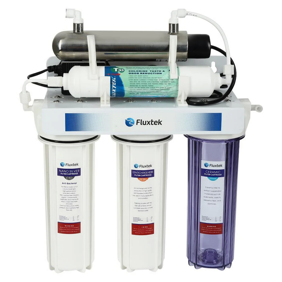 คือการใช้หลอดไฟที่สร้างแสง Ultra Violet เพื่อทำลายเชื้อโรคที่อยู่ในน้ำ สามารถกำจัดเชื้อไวรัส และแบคทีเรียได้ถึง 99% แต่จะยังคงแร่ธาตุต่างๆ ไว้ ทั้งนี้ระบบ UV นั้น ไม่ใช่ระบบกรอง จึงไม่มีผลกับคลอรีน หรือโลหะหนักทั้งหลาย ทำให้ยังไม่สามารถนำมาใช้เป็นน้ำดื่มได้อย่างบริสุทธิ์ โดยทั่วไป ระบบ UV จะนำมาใช้ร่วมกับระบบการกรองแบบ RO เพื่อเพิ่มขั้นตอนในการกรองน้ำสำหรับดื่ม แต่ถ้าเป็นระบบ UV อย่างเดียว ยังใช้ดื่มไม่ได้ค่ะ