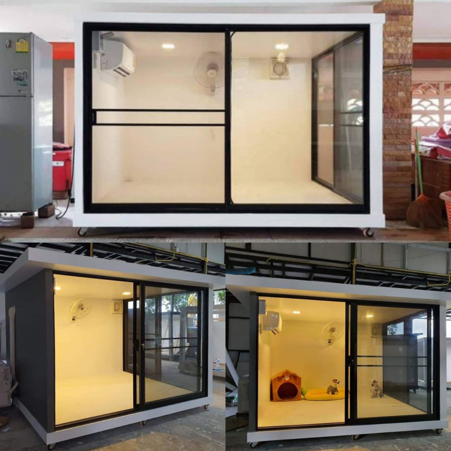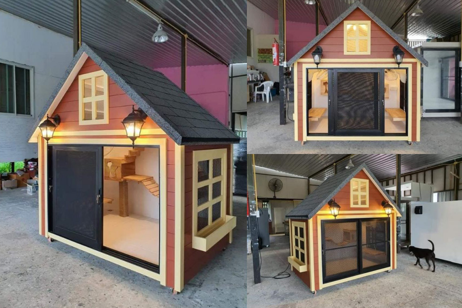 จากร้าน toontima ราคา 45,000 - 47,200 บาท สั่งซื้อได้ที่นี่ 2. บ้านหมา บ้านแมว บ้านน็อคดาวน์ บ้านสัตว์เลี้ยง แบบกระจก ติดแอร์ มีตะแกรงเหล็ก มุ้งลวดทุกหลัง