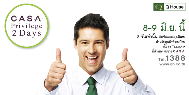 1 ก.ค. 56 12,048CASA Privilege 2 Days 8 - 9 มิ.ย.นี้ ข้อเสนอสุดพิเศษจาก 22 โครงการบ้าน CASA