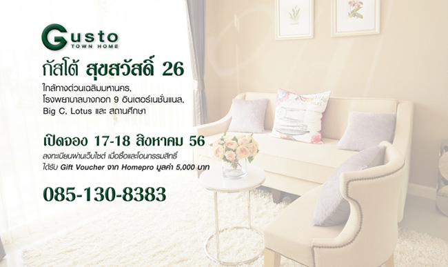 6 ส.ค. 56 12,125Gusto เปิดจอง กัสโต้ สุขสวัสดิ์ 26 (Gusto Suksawat) ทาวน์โฮมโครงการใหม่