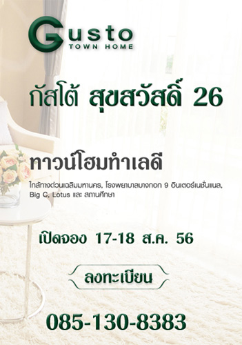 3. กัสโต้ สุขสวัสดิ์ 26ทาวน์โฮมทำเลดี ใกล้ทางด่วนเฉลิมมหานคร, โรงพยาบาลบางกอก 9 อินเตอร์เนชั่นแนล, Big C และ Lotus เปิดจอง 17 - 18 ส.ค.56 นี้ สามารถติดต่อโครงการได้ที่เบอร์ 085-130-8383พิเศษ!!! ลงทะเบียนผ่านเว็บไซต์ เมื่อซื้อ และโอนกรรมสิทธิ์ ได้รับ Gift Voucher จาก Homepro มูลค่า 5,000 บาท