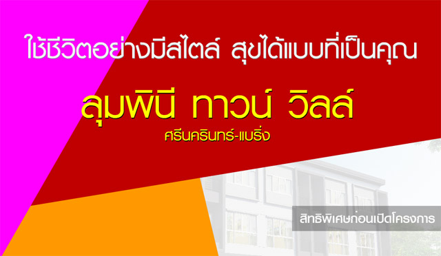 16 ต.ค. 56 5,181Lumpini Town Ville Srinakarin-Bearing (ลุมพินี ทาวน์ วิลล์ ศรีนครินทร์ - แบริ่ง)บริษัท แอล.พี.เอ็น. ดีเวลลอปเมนท์ จำกัด (มหาชน) หรือ LPN เตรียมเปิดตัวโครงการทาวน์เฮ้าส์ใหม่ Lumpini Town Ville Srinakarin-Bearing (ลุมพินี ทาวน์ วิลล์ ศรีนครินทร์ - แบริ่ง) ด้วยสโลแกน "ใช้ชีวิตอย่างมีสไตล์ สุขได้แบบที่เป็นคุณ" โครงการตั้งอยู่ในซอยศรีด่าน18 ถนนศรีนครินทร์ รองรับกับรถไฟฟ้าสายสีเหลือง (โครงการในอนาคต) ตรงข้ามโครงการเป็นซอยสุขุมวิท 107 (แบริ่ง) และซอยสุขุมวิท 105 (ลาซาล) สามารถใช้ทะลุไปรถไฟฟ้าสายสีเขียวสถานีแบริ่งได้ โครงการเชื่อมต่อกับถนนเทพารักษ์, ถนนกาญจนาภิเษก (วงแหวนรอบนอกฝั่งใต้), ถนนบางนา-ตราด และถนนอุดมสุข ใกล้กับศูนย์การค้า เช่น บิ๊กซี ศรีนครินทร์, Makro, เซ็นทรัลบางนา, Index Living Mall, IKEA, พาราไดซ์ พาร์ค และซีคอน สแควร์