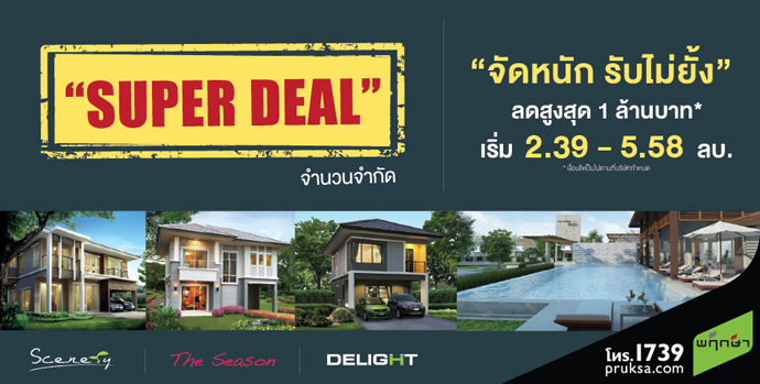 บริษัท พฤกษา เรียลเอสเตท จำกัด (มหาชน) จัดโปรโมชั่นประจำเดือนตุลาคม 2556 สำหรับลูกค้าที่สนใจซื้อบ้าน กับแคมเปญ "จัดหนัก รับไม่ยั้ง" แคมเปญยิ่งใหญ่แห่งปี เริ่ม 2.39 ล้านบาท พบกับบ้านเดี่ยว 3 แบรนด์ดัง ได้แก่ ซีนเนอรี่ (Scenery), เดอะ ซีซัน(The Season) และดีไลท์ (Delight) บ้าน 2 ชั้นหลากหลายสไตล์ ดีไซน์ใหม่ ให้คุณได้สัมผัสกับธรรมชาติและประโยชน์ใช้สอย พร้อมทั้งสาธารณูปโภคพื้นฐานครบครันรายละเอียดโปรโมชั่น