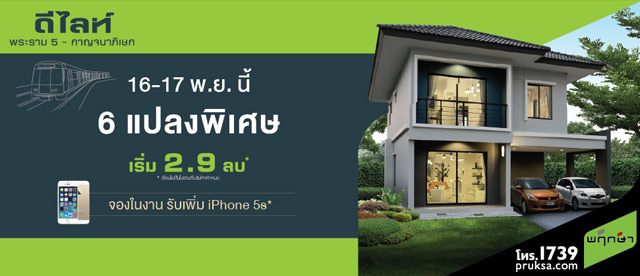 4 ธ.ค. 56 3,052พฤกษาฯ จัดโปรโมชั่น 6 แปลงพิเศษ ดีไลท์ พระราม 5 - กาญจนาภิเษก