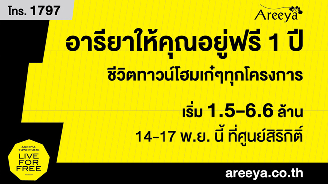 สอบถามรายละเอียดเพิ่มเติม โทร. 1797 หรือทางเว็บไซต์ www.areeya.co.thข่าว-โปรโมชั่นล่าสุดอื่นๆ