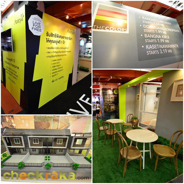 โปรโมชั่นทาวน์โฮม และคอนโดภายในงานTownhome - Areeya Live For Freeอารียาให้คุณอยู่ฟรี 1 ปี กับชีวิตทาวน์โฮมเก๋ๆ ทุกโครงการ บน 6 ทำเลคุณภาพ จองและทำสัญญาเพียง 5,000 บาท ก็เข้าอยู่ได้เลย พร้อมรับฟรี iPhone 5s* เมื่อจองภายในงาน โดยไฮไลท์ของทาวน์โฮมในงานนี้ คือ เดอะวิลเลจ ทั้ง 2 ทำเล กับวิลเลจทาวน์ 2 ชั้นแนวคิดใหม่ สไตล์ Modern Colonial เป็นส่วนตัวทุกหลัง กับดีไซน์ผนังบ้านเป็นอิสระ ไม่ติดกับใคร ได้อารมณ์บ้านเดี่ยว บ้านแฝด