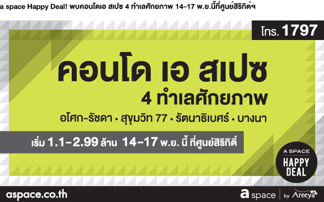 a space Happy Deal ! โครงการคอนโดที่เข้าร่วมโปรโมชั่นในงานนี้ประกอบไปด้วย