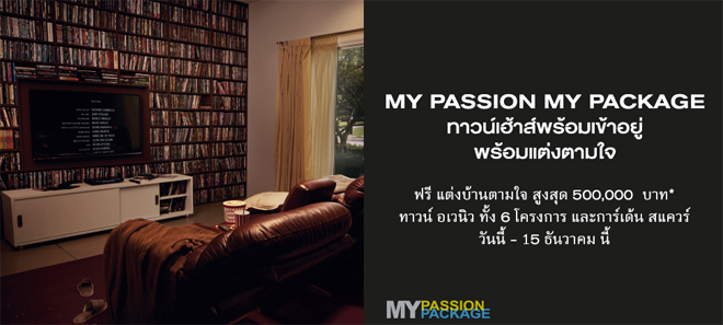 แสนสิริ ส่งที่สุดของโปรโมชั่นสำหรับลูกค้าที่สนใจซื้อทาวน์โฮม กับแคมเปญ "MY PASSION MY PACKAGE" กับทาวน์เฮ้าส์พร้อมเข้าอยู่ แบรนด์ ทาวน์ อเวนิว ทั้ง 6 โครงการ และการ์เด้น สแควร์ ด้วยโปรโมชั่นโดนใจ ฟรี! แต่งบ้านตามใจ สูงสุด 500,000 บาท พร้อมให้คุณเป็นเจ้าของโครงการแสนสิริได้ง่าย ตั้งแต่วันนี้ -15 ธันวาคม 2556
