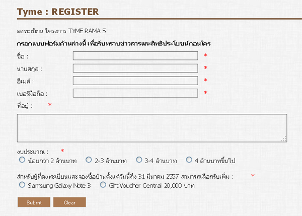 TYME พระราม 5 (Tyme Rama 5) เป็นทาวน์โฮม 2 ชั้น สไตล์โมเดิร์น กับพื้นที่โครงการ 20 - 30 ไร่ พร้อมสาธารณูปโภคครบครันสำหรับผู้อยู่อาศัยผู้ที่สนใจ สามารถลงทะเบียนเพื่อรับสิทธิพิเศษได้ที่ลิงก์ด้านล่างนี้สำหรับผู้ที่ลงทะเบียนและจองซื้อบ้านตั้งแต่วันนี้ถึง 31 มีนาคม 2557 สามารถเลือกรับเพิ่ม Samsung Galaxy Note 3 หรือ Gift Voucher Central มูลค่า 20,000 บาทสอบถามรายละเอียดเพิ่มเติมได้ที่ โทร.0-2645-0111 หรือทางเว็บไซต์ www.kland.co.th