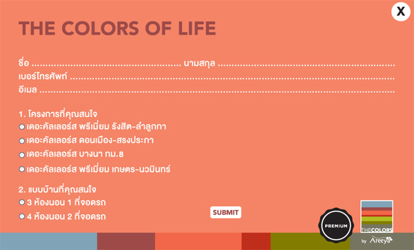 รับฟรี! ตั๋วเครื่องบินไป-กลับ กรุงเทพ-ญี่ปุ่น 2 ที่นั่ง หรือตั๋วเครื่องบินไป-กลับ กรุงเทพ-ฮ่องกง2 ที่นั่ง"ลงทะเบียนเพื่อรับส่วนลดเพิ่มเติม 10,000 บาท ที่ลิงก์ด้านล่างนี้สอบถามรายละเอียดเพิ่มเติม โทร. 1797 กด 35 เว็บไซต์ www.thecolors.co.th