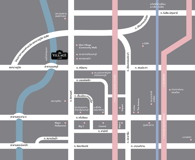 แผนที่โครงการ เดอะ วิลเลจ แจ้งวัฒนะ - ติวานนท์- ติดริมแม่น้ำเจ้าพระยาบน ถ.ติวานนท์ และเพียง 5 นาทีสู่ทางด่วนศรีสมาน