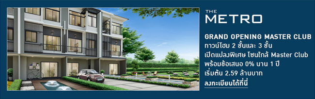 - เดอะเมทโทร(The Metro) รามคำแหง - วงแหวน ทาวน์โฮม 2 ชั้นเริ่ม 2.59 ล้านบาท ทาวน์โฮม 3 ชั้นเริ่ม 3.39 ล้านบาท